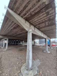 „Na větším z objektů je kompletně dokončena střešní konstrukce. V následující fázi bude probíhat navážka a hutnění kameniva, realizace hydroizolačních a tepelněizolačních vrstev a následná betonáž konstrukčních vrstev. Menší objekt je již opláštěn, dokončena je montáž hliníkové fasády. V nejbližší době dojde na realizaci střešního souvrství. Ve vnitřních prostorech je dokončena dešťová i splašková kanalizace a jsou provedeny a zhutněny konstrukční vrstvy pod izolacemi. Následně začne specializovaná firma realizaci izolačních vrstev,“ uvedl stavbyvedoucí Radim Cizler z HSF System.